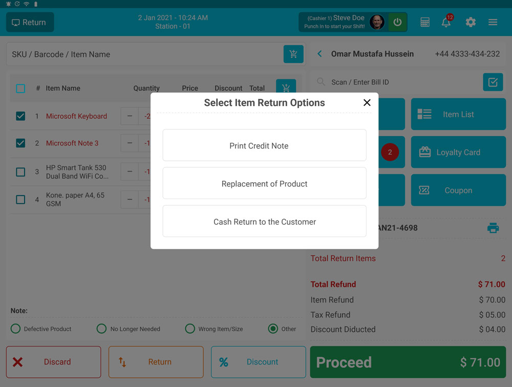 Cash Refund Screen